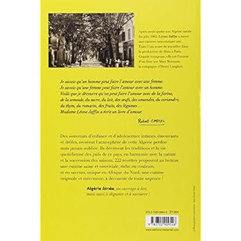 Des souvenirs d'enfance et d'adolescence intimes, émouvants et drôles, recréent l'atmosphère de cette Algérie perdue mais jamais oubliée. Ils décrivent les traditions et la vie quotidienne des juifs de ce pays, en harmonie avec la nature et la succession des saisons. 222 recettes proposent au lecteur une cuisine saine et conviviale, riche en couleurs et en saveurs, unique en Afrique du Nord, une cuisine originale et méconnue, à découvrir de toute urgence !