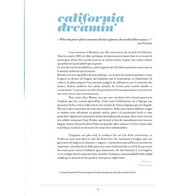 Californie, années 1960-70 : le mouvement hippie bat son plein. On chante, on milite, on s'aime et on mange ! Au coeur de tout, un grand mot d'ordre : le respect de la vie et de la nature ! Ce goût pour une nourriture simple et saine perdure aujourd'hui encore comme en témoigne cet ouvrage. Adepte de la Californie et de sa cuisine légère et savoureuse, Elsa Launay nous propose ici une quarantaine de recettes végétariennes pleines de santé et de vitamines.