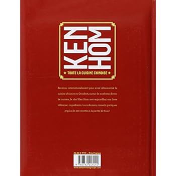 KEN HOM est un des ambassadeurs de la cuisine chinoise à travers le monde. Il avait déjà écrit plusieurs livres sur la cuisine Thaï, ou la cuisine au wok. Il a même une ligne d'ustensiles Ken Hom Everyday Ensemble Wok 10 pièces en Acier Carbone 31 cm...Voici le livre qui rassemble ses recettes, celles de sa famille (sa mère notamment).Points positifs:-les explications données sur les différences entre les écoles de cuisine de chine: très instructif-les informations données sur les ingrédients dont nous allons avoir besoin et comment les choisir-les recettes de sauces: sauce aigre-douce, sauce au vinaigre et au gingembre, dit au piment, sauce à la moutarde anglaise, sauce soja aux oignons et au piment, sauce à l'ail et au vinaigre, le mélange poivre/sel,-les "tours de main" expliqués au départ: trancher verticalement, trancher horizontalement, trancher en biais, trancher en roulant, couper en julienne, couper en dés, hacher, mariner, épaissir, velouter, blanchir, pocher, sauter, frire, frire à la sauteuse, mijoter et cuire en ragoût, braiser et braiser rouge, cuire à la vapeur, rôtir, cuire au barbecue, double cuisson, réchauffer... Autant d'explications qui rendent le livre accessible même aux néophytes de la casserole!-les techniques de découpe pour les décorations (roses de tomates, fleurs de piment frais, éventails de concombre...)-toutes les recettes que j'espérais retrouver y sont présentes: raviolis, dumplings, chips de crevettes, rouleaux de printemps, une pelletée de soupes dont la soupe de won ton qui est trop bonne, porc laqué, le poulet ivre (poulet au vin de riz de Shaoxing) et j'en passe...Points négatifs:-peu de photo (même pas forcément une par recette)-les desserts m'ont un peu déçue-pas d'astuces recette par recette.En conclusion, une très très bonne base quoi!